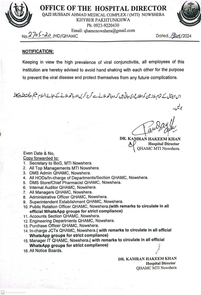 Notifications regarding Patient care & Employee safety